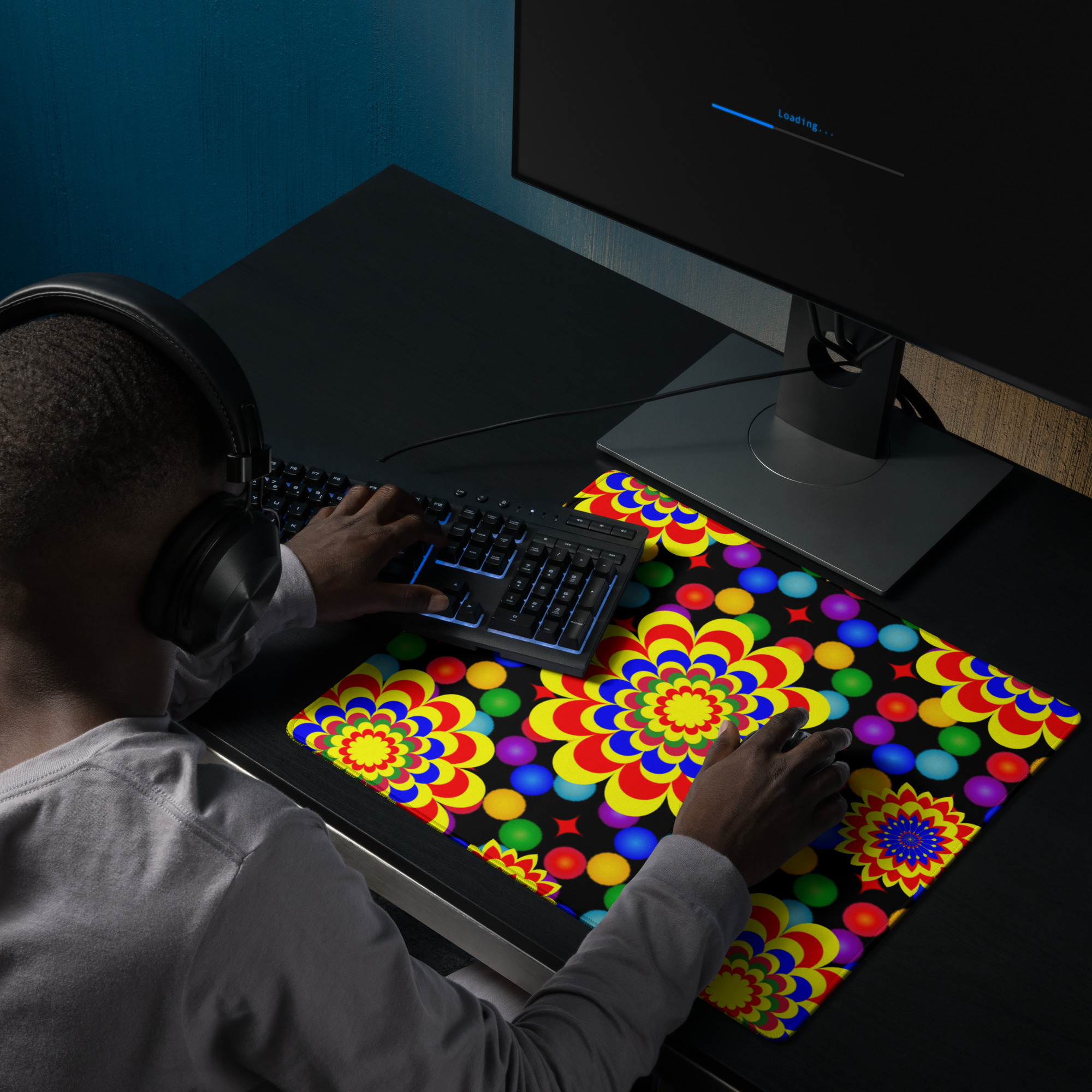 Take your gaming experience to the next level with our vibrant gaming mouse pad featuring an original art pattern design of yellow, red, and blue balls and flowers. This unique design combines style and functionality, providing a precise and responsive gaming surface.