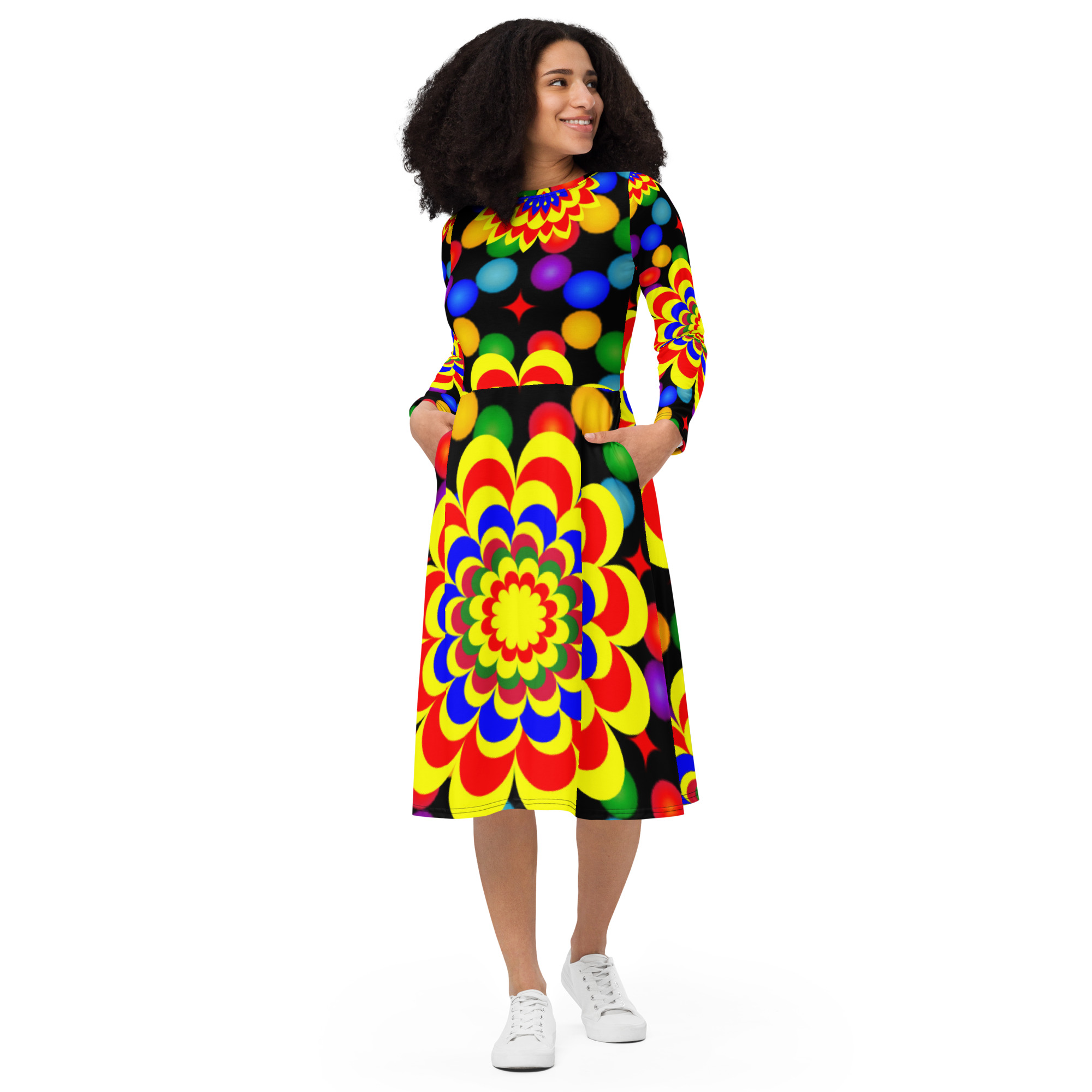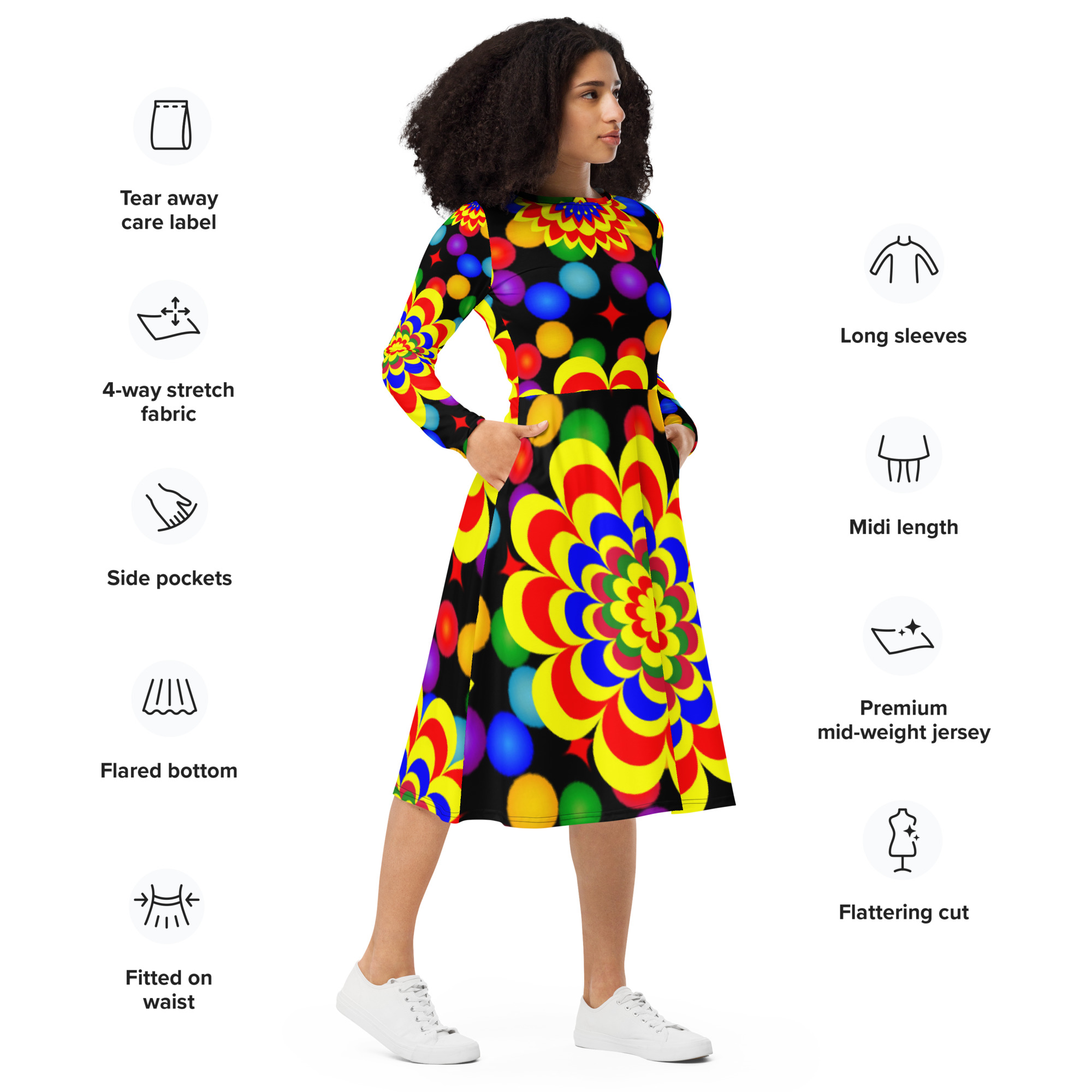 Elevate your wardrobe with our stunning long sleeve midi dresses featuring original art pattern designs. Each dress is a masterpiece, blending elegance and creativity to make you stand out.