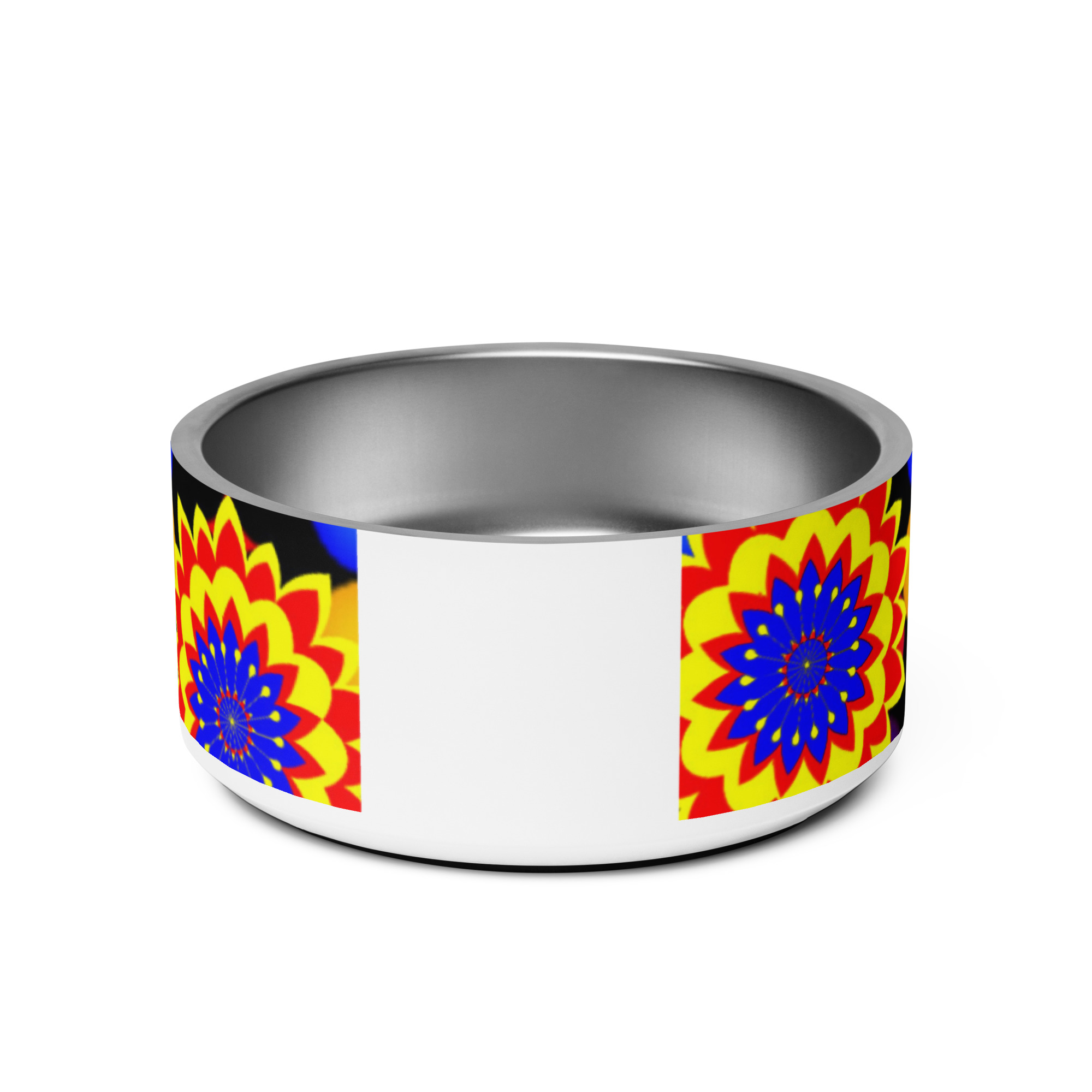 Make mealtime a delight for your furry friend with our vibrant pet bowl featuring an original art pattern design of yellow, red, and blue balls and flowers. This unique design adds a touch of personality and fun to your pet’s dining experience.