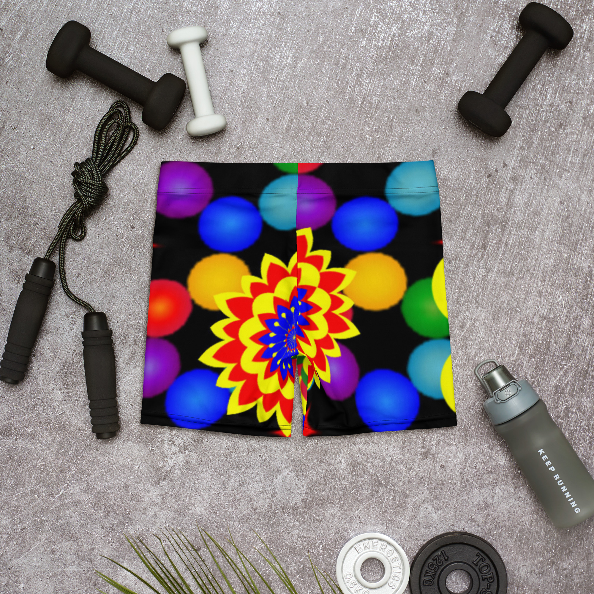 Get ready to make a statement with our vibrant shorts featuring an original art pattern design of yellow, red, and blue balls and flowers. These unique shorts combine style, comfort, and individuality, making them perfect for casual outings, beach trips, or everyday wear.