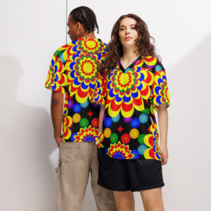 Original Art Yellow, Red, and Blue Ball and Flowers Pattern Design on American Football Jersey