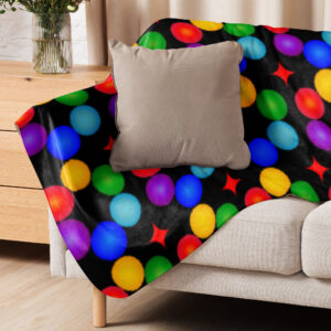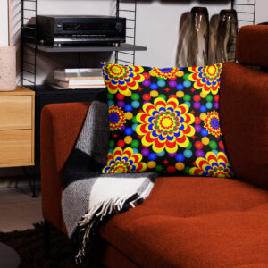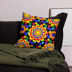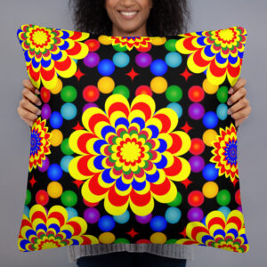 *Original Art Yellow, Red, and Blue Ball and Flowers Pattern Design on Premium Pillow*