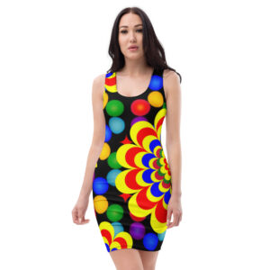 *Original Art Yellow, Red, and Blue Ball and Flowers Pattern Design on Bodycon Dress*