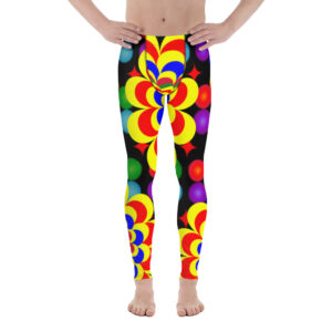 *Original Art Yellow, Red, and Blue Ball and Flowers Pattern Design on Men’s Athletic T-Shirts*