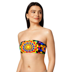 *Original Art Yellow, Red, and Blue Ball and Flowers Pattern Design on Recycled Bandeau Bikini Top*