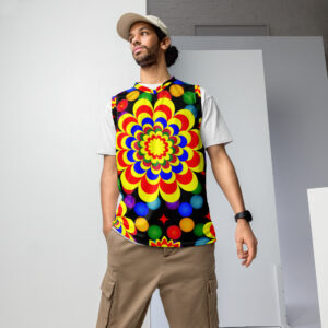 *Original Art Yellow, Red, and Blue Ball and Flowers Pattern Design on Men’s T-shirts*