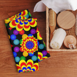 *Original Art Yellow, Red, and Blue Ball and Flowers Pattern Design on Hand Towel*