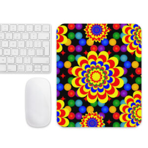 *Original Art Yellow, Red, and Blue Ball and Flowers Pattern Design on Gaming Mouse Pad*