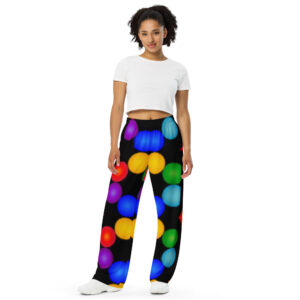 *Original Art Yellow, Red, and Blue Ball and Flowers Pattern Design on Women’s Joggers*